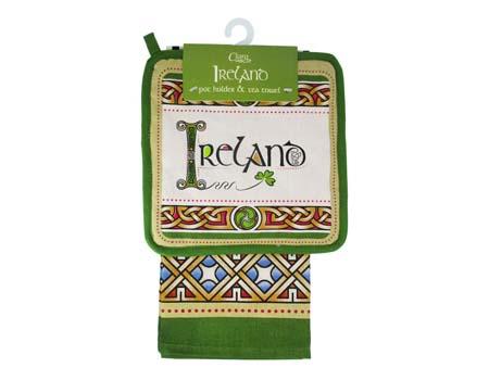 This Set of Kitchen Textile designs was inspired by 9th century ancient Celtic manuscripts and the four emblems of Ireland, the shamrock, the harp, the high cross and the Claddagh ring. Each is made from 100% cotton.