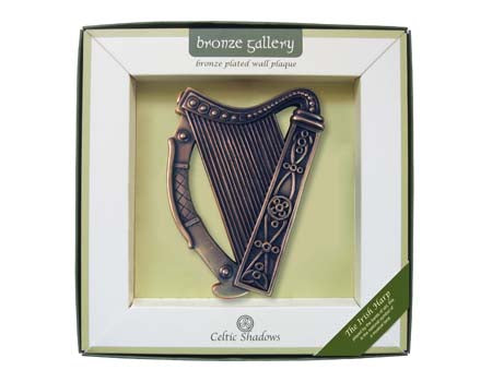 The Irish Harp, dating back to the 12th century, and made famous by bards such as Turlough O'Carolan, the blind harpist and composer, was adopted by Ireland as its national symbol. Here it is portrayed in plated bonze, enhancing the carved detailing.