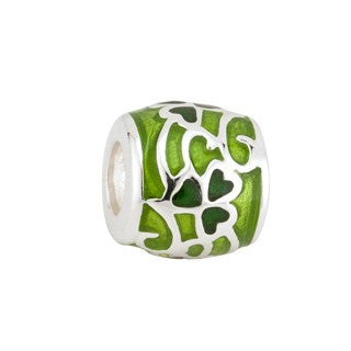 Charm Bead Green Enamel Shamrock Tube Sterling Silver