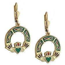 Claddagh Drop Enamelled 18ct Gold Plated Earrings from Solvar Dublin