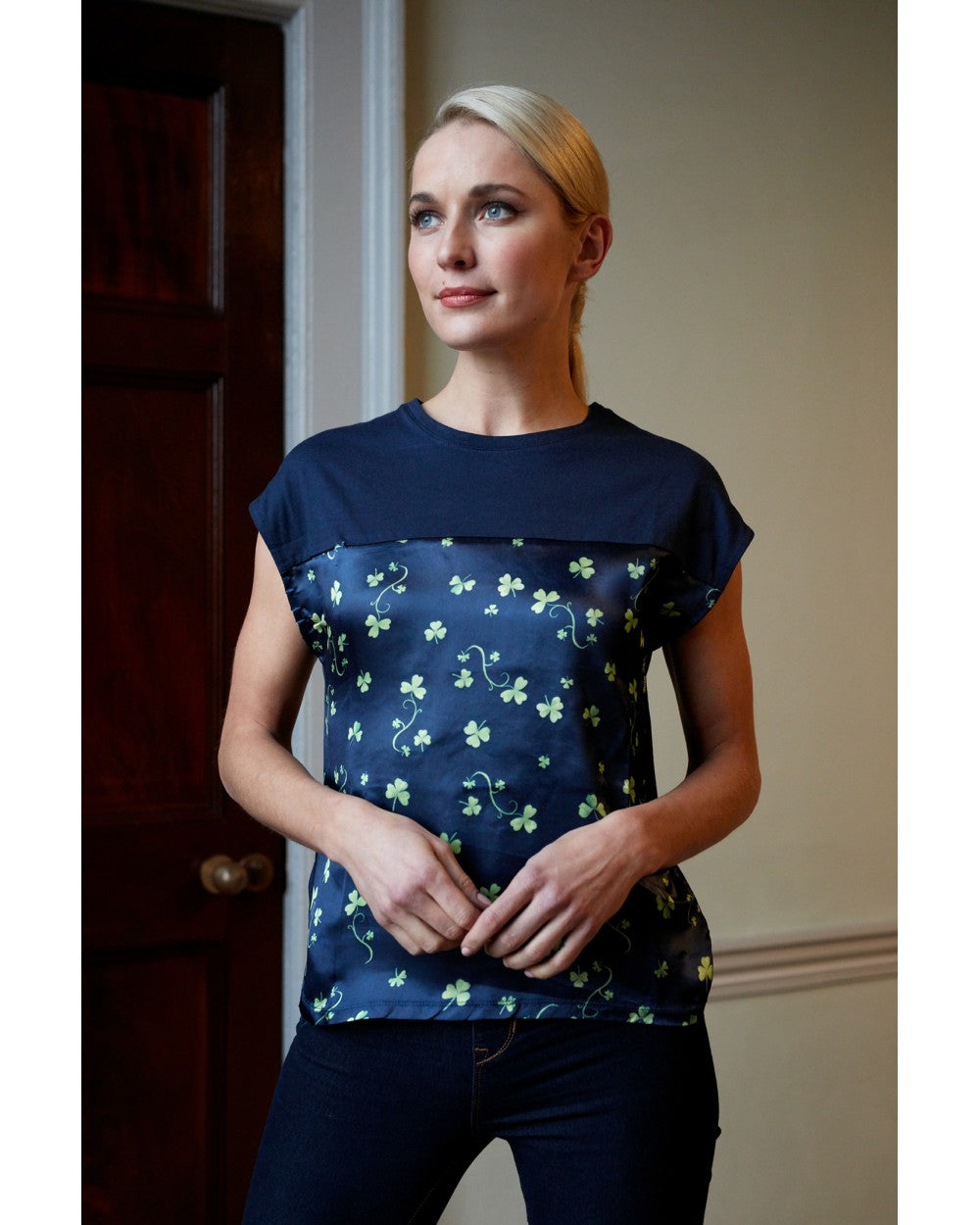 Ladies Satin T Shirt Shamrock Patrick Francis Design. PF7418