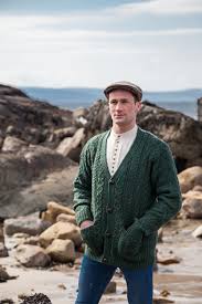 Aran Knit Cardigan V Neck Charcoal From Aran Woollen Mills Westport County Mayo Ireland.
