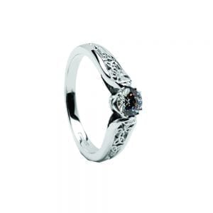 This 14k gold ring features .50cts diamond and a trinity knot design.