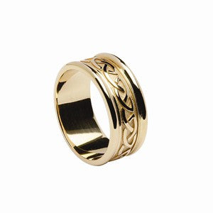 14kt Yellow Gold Celtic Knot raised patterned band, with light yellow gold rims.