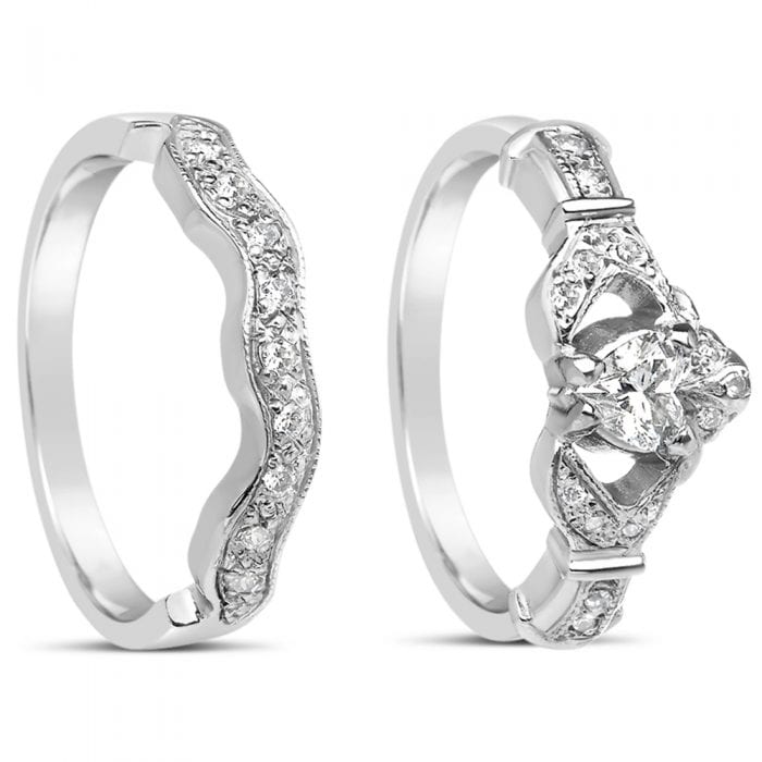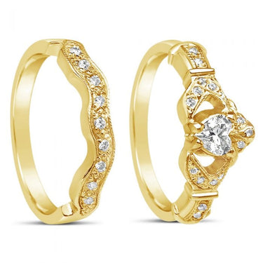 Authentic 0.40cts Diamond Claddagh Ring with Matching Diamond Set Band.