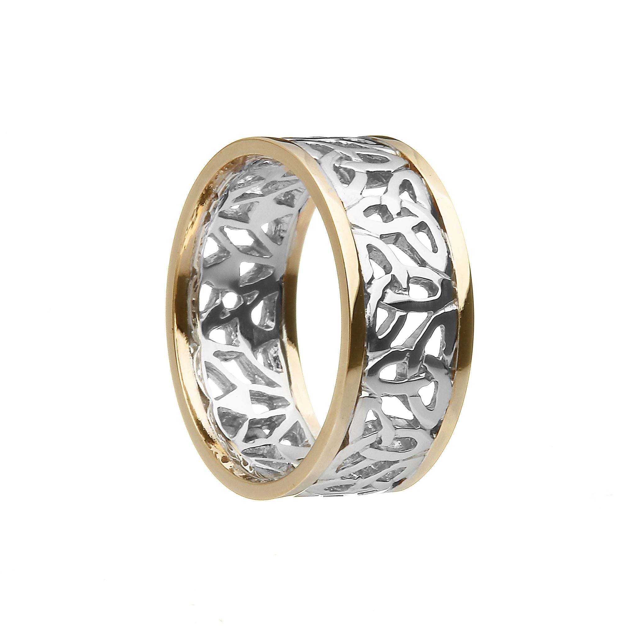 Men's Trinity Knot Filigree Wedding Band with Yellow Gold Trims.