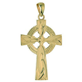 9CT GOLD CELTIC CROSS PENDANT WITH CHAIN.