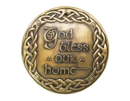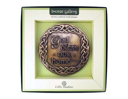 This attractive piece is a blessing for your home surrounded by the eternal weaving of Celtic interlacing. It is worked in plated bonze, enhancing the carved detailing.