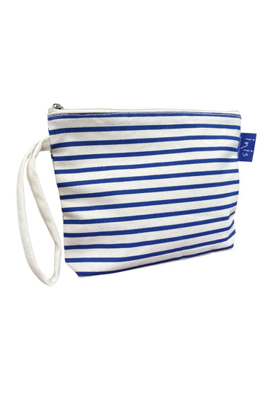 The Inis Blue Striped Cosmetic Bag is the perfect travel companion for storing your beach essentials.