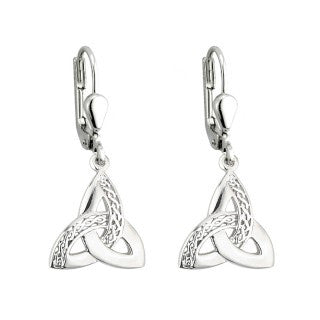 Sterling Silver Trinity Knot Drop Earrings highlighted with fine engraved trinity knots